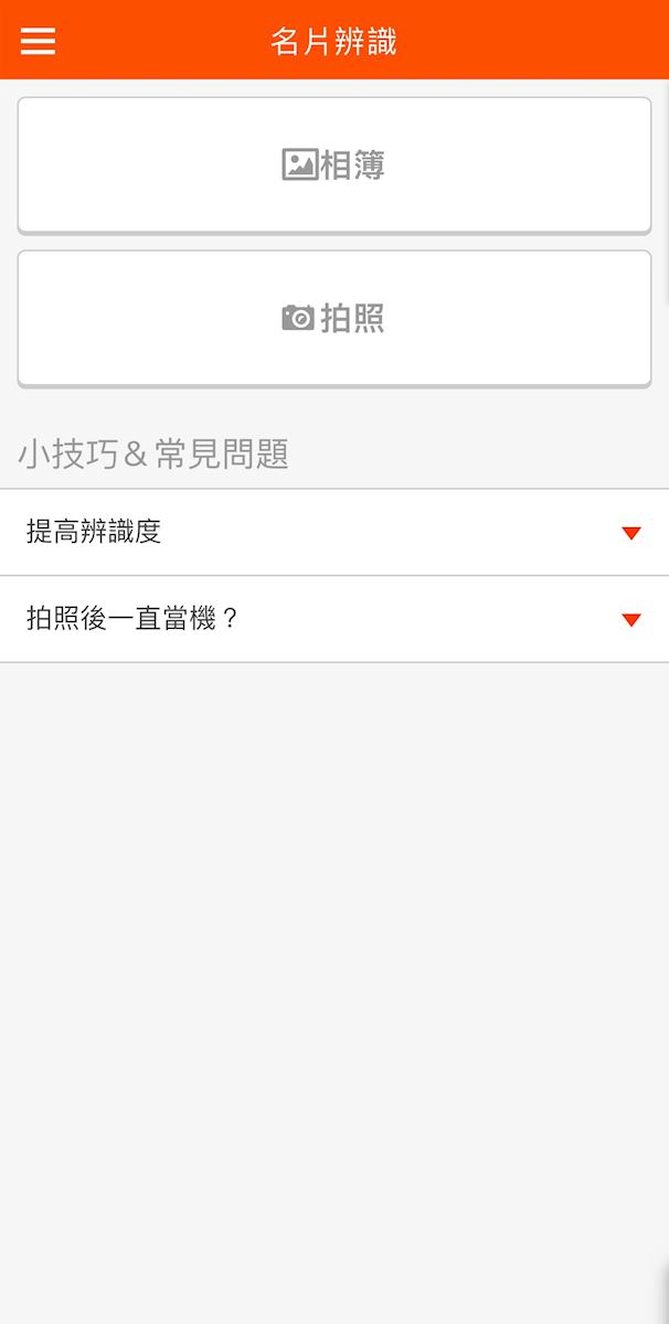 1. 請在手機APP的功能列表中選擇【名片辨識】。