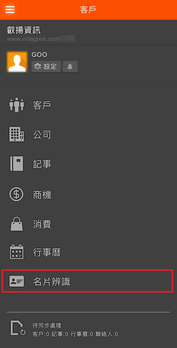 「名片辨識」是一個可以利用手機拍照功能拍下紙本名片,輸入至系統中進行辨認並新增客戶的功能。