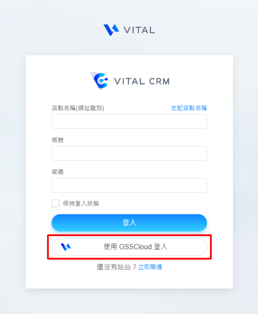※舊使用者請依照原本的登入方式輸入資訊(店點名稱∕網址識別、帳號、密碼)即可。