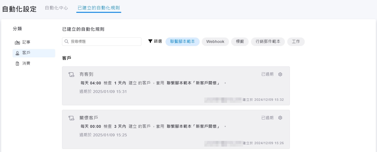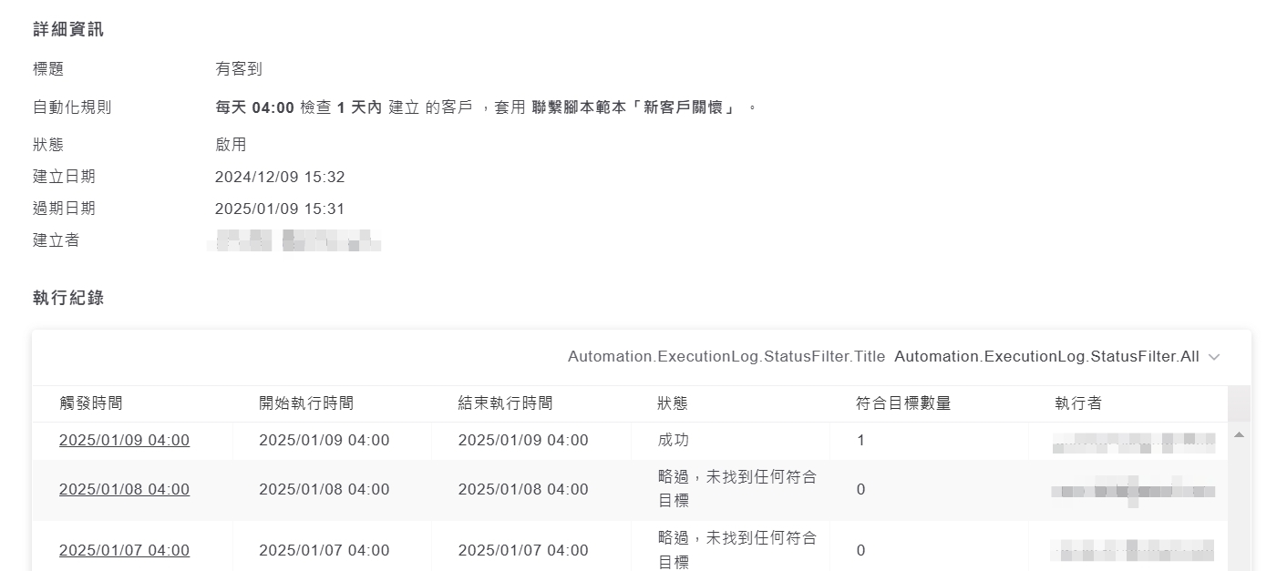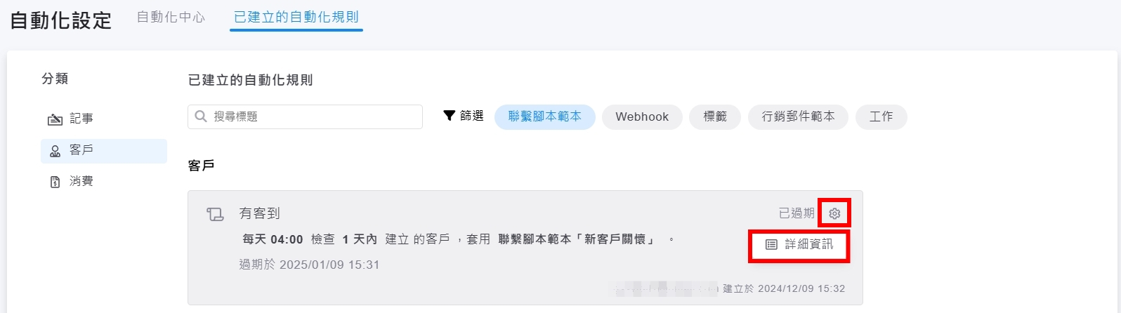 點擊任意一項已建立的自動化規則右方齒輪,可以查看詳細資訊