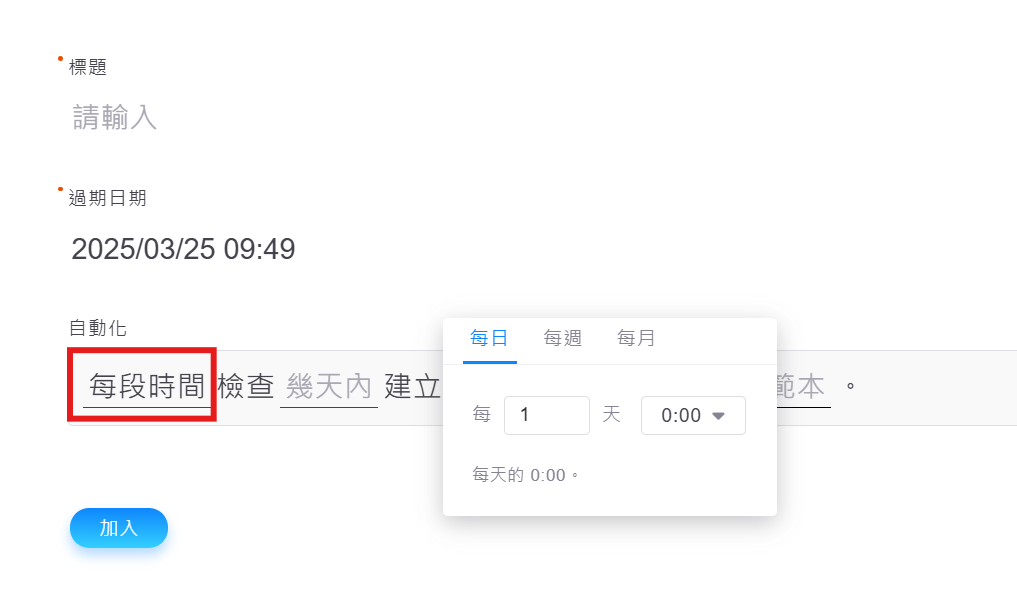 指定完執行時間、檢查條件與聯繫腳本範本後,按下加入,即可建立一個自動化規則