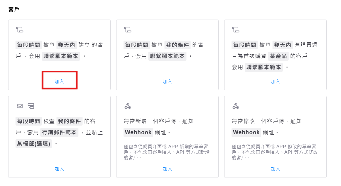 按下卡片下方的「加入」後,就可以依卡片開始設定自動化規則