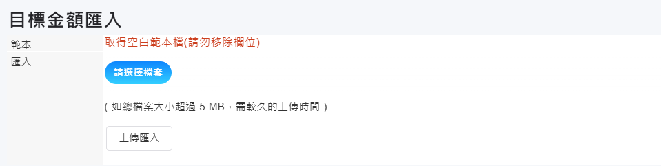 * 匯入目標金額資料,以下為必填欄位: 帳號、年份