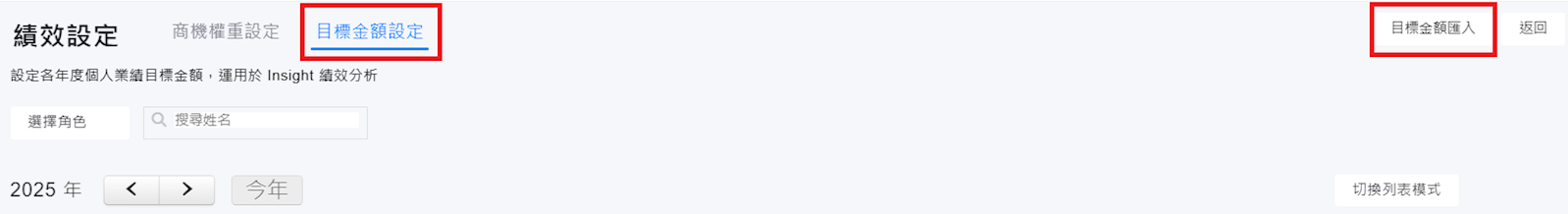進入績效設定功能畫面,點選【目標金額設定>目標金額匯入】