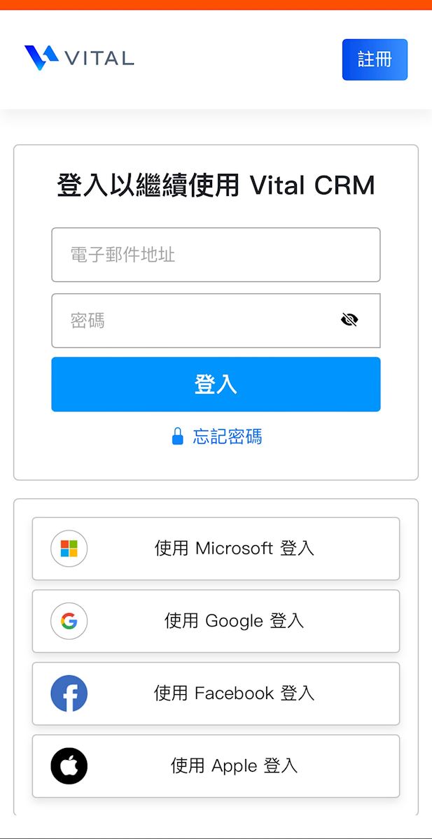 2. 輸入帳號密碼,或者使用Microsoft、Google及Facebook等方式完成登入。