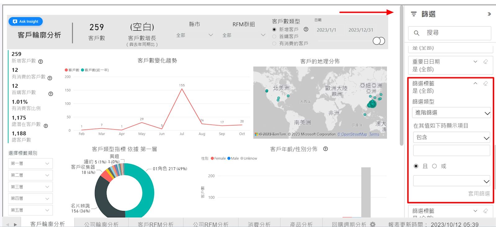 報表就會篩選並顯示擁有此兩種標籤的客戶。