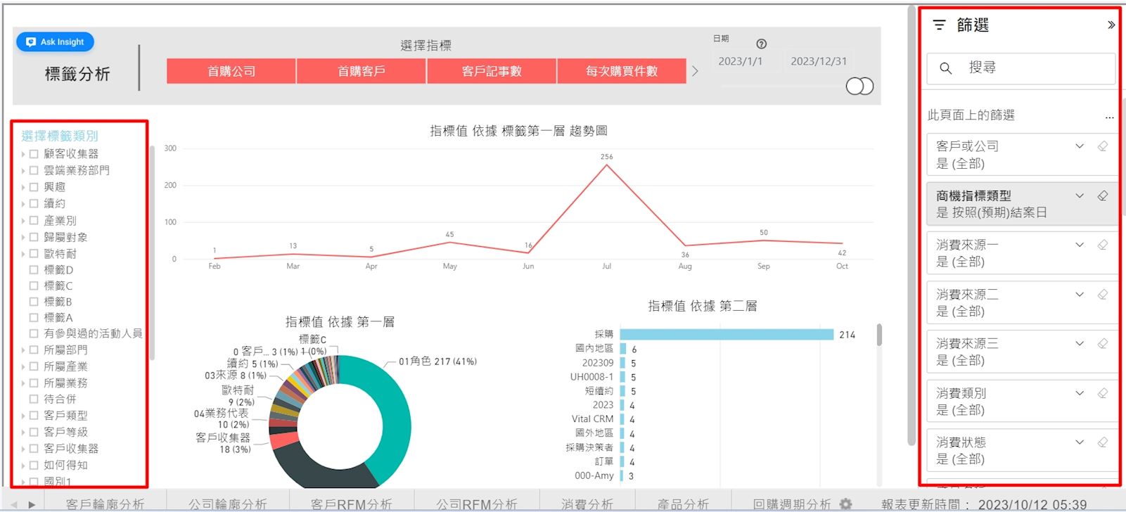 您可以透過 insight 模組,進行標籤的分析。