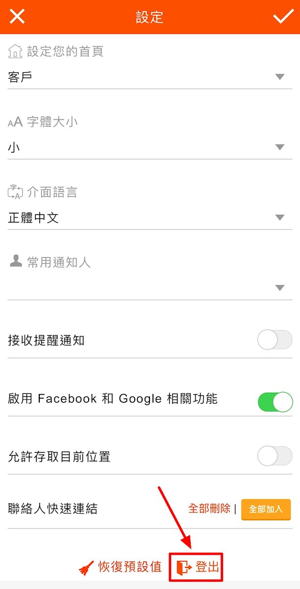 1.在功能表中點擊【設定】2.畫面最下方可以點擊【登出】