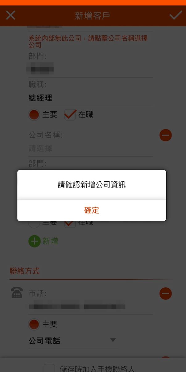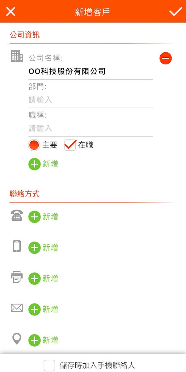 *本功能操作同樣適用於以名片辨識新增客戶之程序。