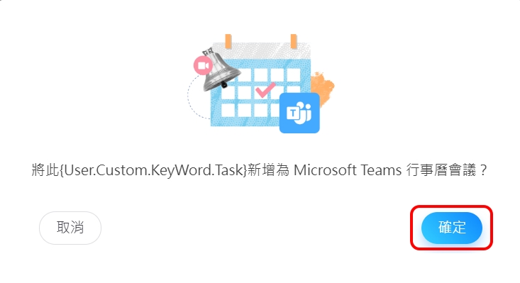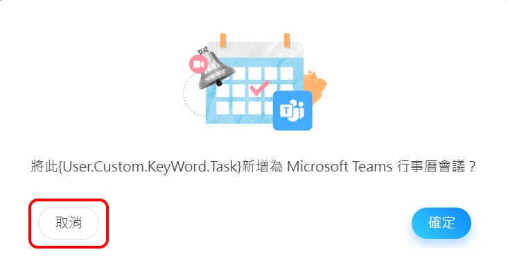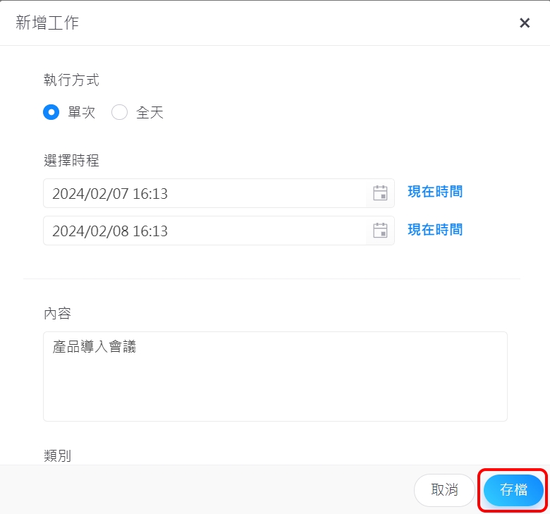 新增工作時按【存檔】,會跳出對話框詢問是否加入會議,點【確定】即可將工作加入會議。