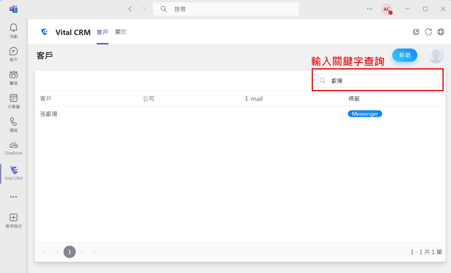 進入客戶資料頁面後,可在右上方輸入客戶姓名或電話,以關鍵字查詢客戶資料。
