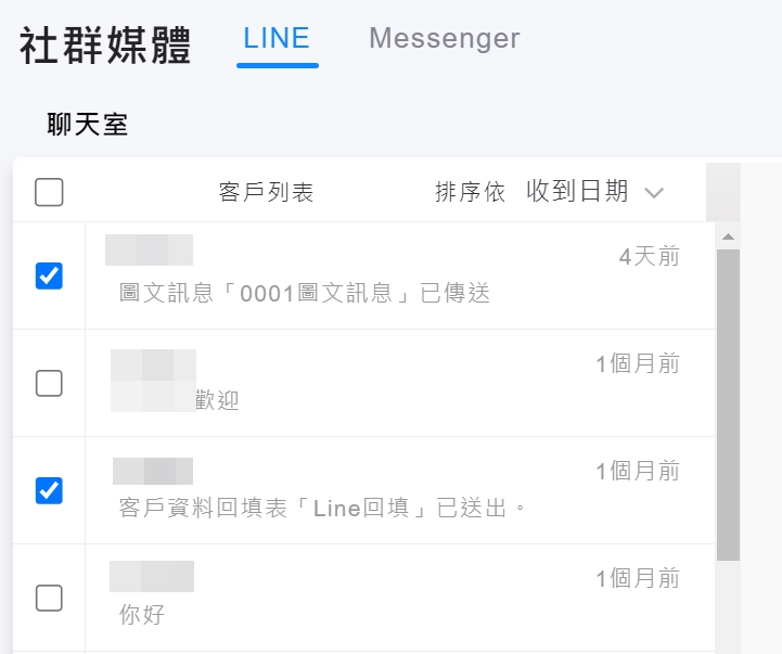 *如果不想要對列表上的所有客戶發送,也可先在列表中勾選要送的對象,或是先下條件搜尋