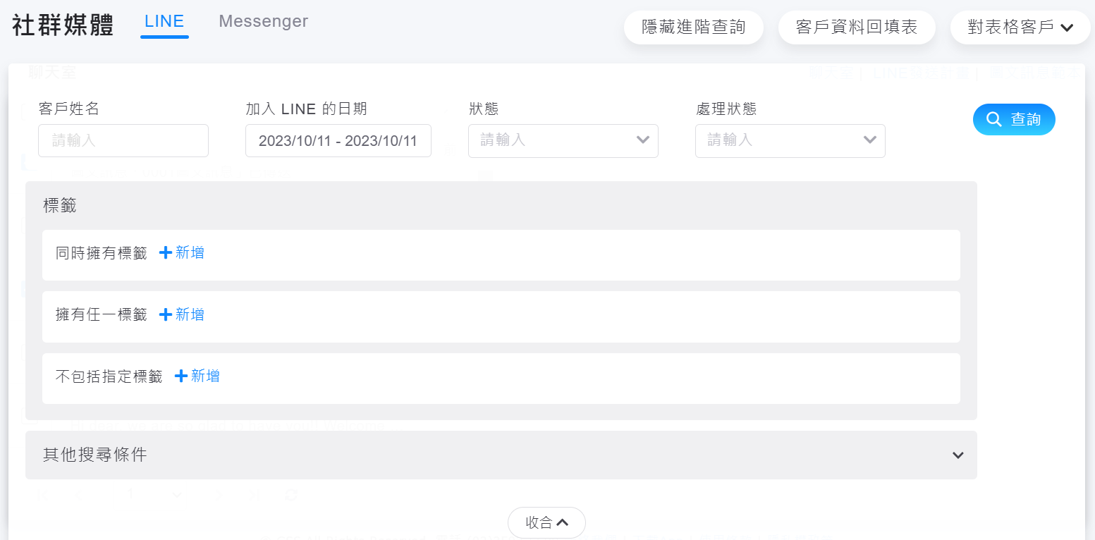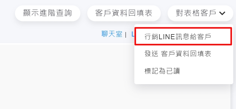 2. 進入功能頁面中,請點擊右上方的「對表格客戶>行銷LINE訊息給客戶」