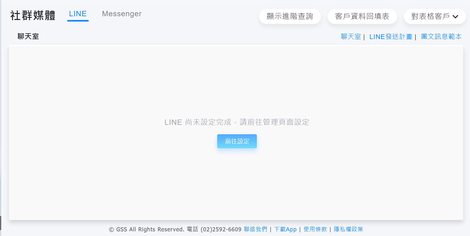 1.請至Vital CRM系統中,點選左方功能列表中的【社群媒體】,初次設定時就會進入設定畫面,請點擊【前往設定】。