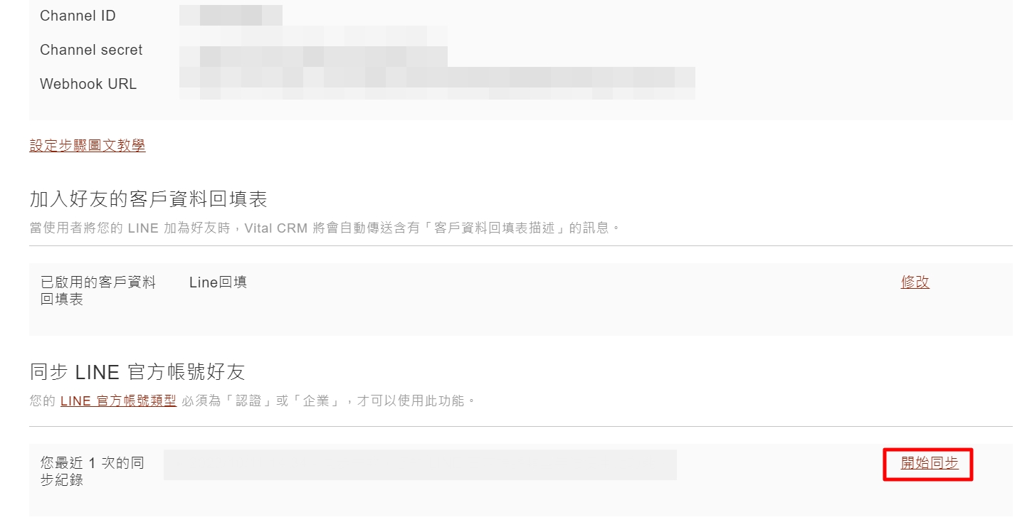 - 待同步數量:取回清單後,與CRM內既有的LINE客戶比對,尚未加入系統的好友總數