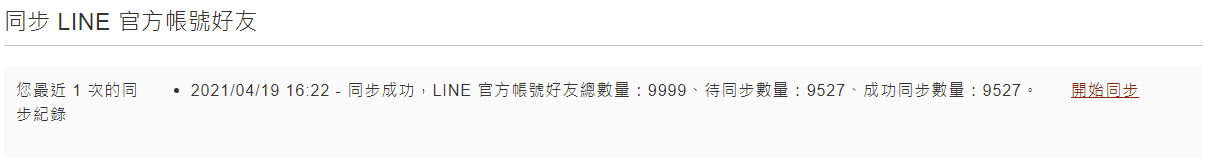 - 成功同步數量:將待同步的好友逐筆處理後,成功加為CRM客戶的數量