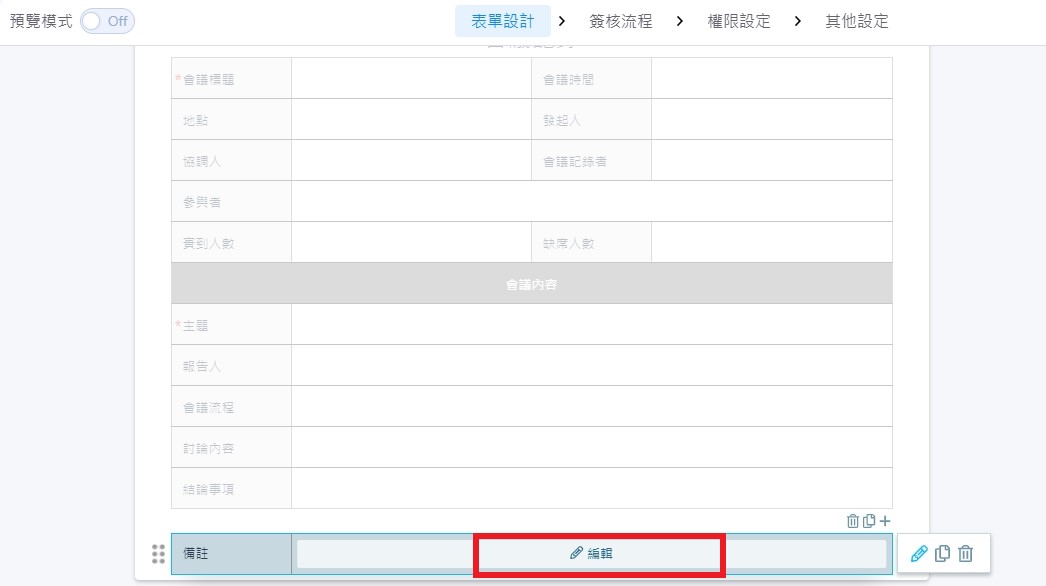 3. 進入表單後,針對欲修改的欄位點選【編輯】。