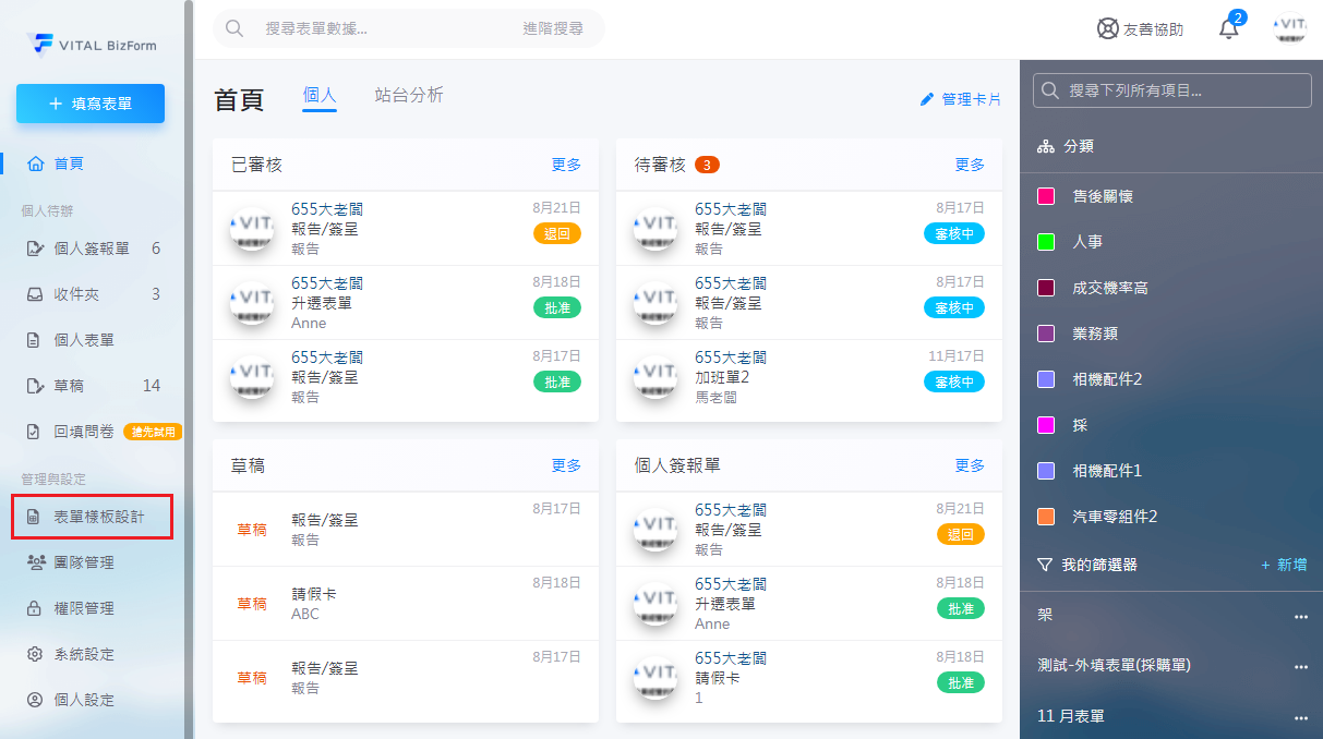 *【表單樣版設計】僅限「管理員」操作,可編輯與新增表單樣板 (格式)。