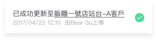 若已有對應資訊,則上傳紀錄將顯示「已成功更新至OO站台」