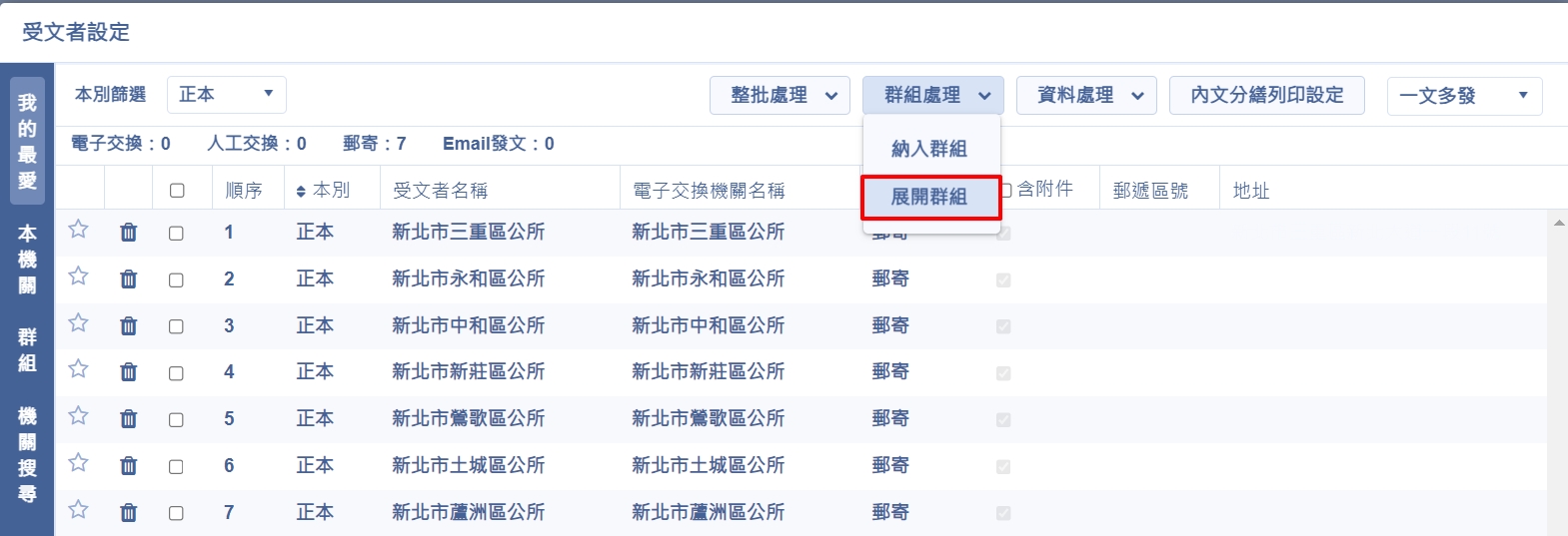圖1-2:受文者顯示群組清單