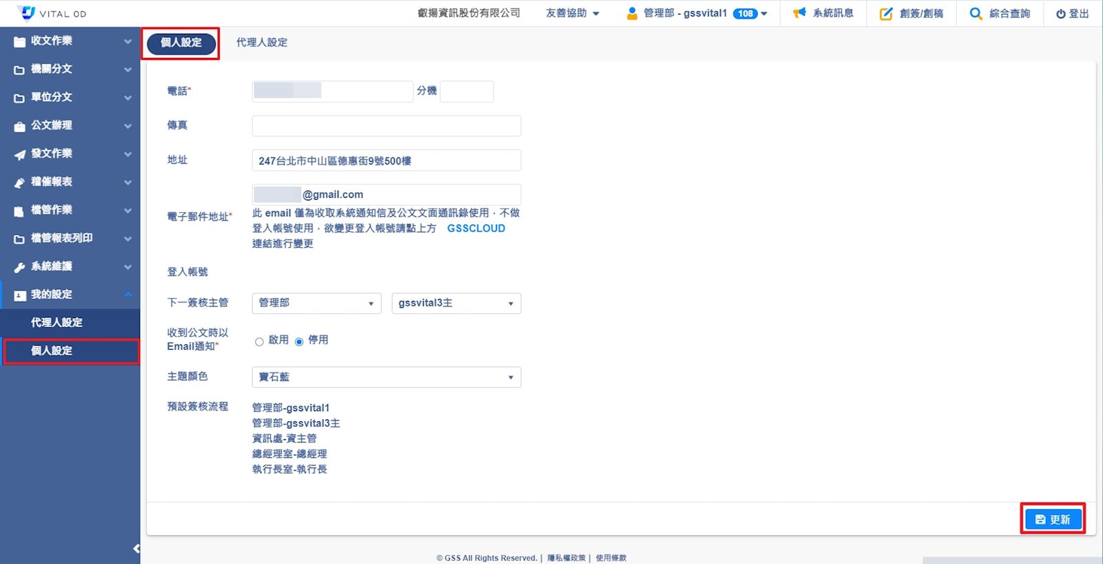 1. 請先至【我的設定>個人設定】頁簽,進行個人資料設定