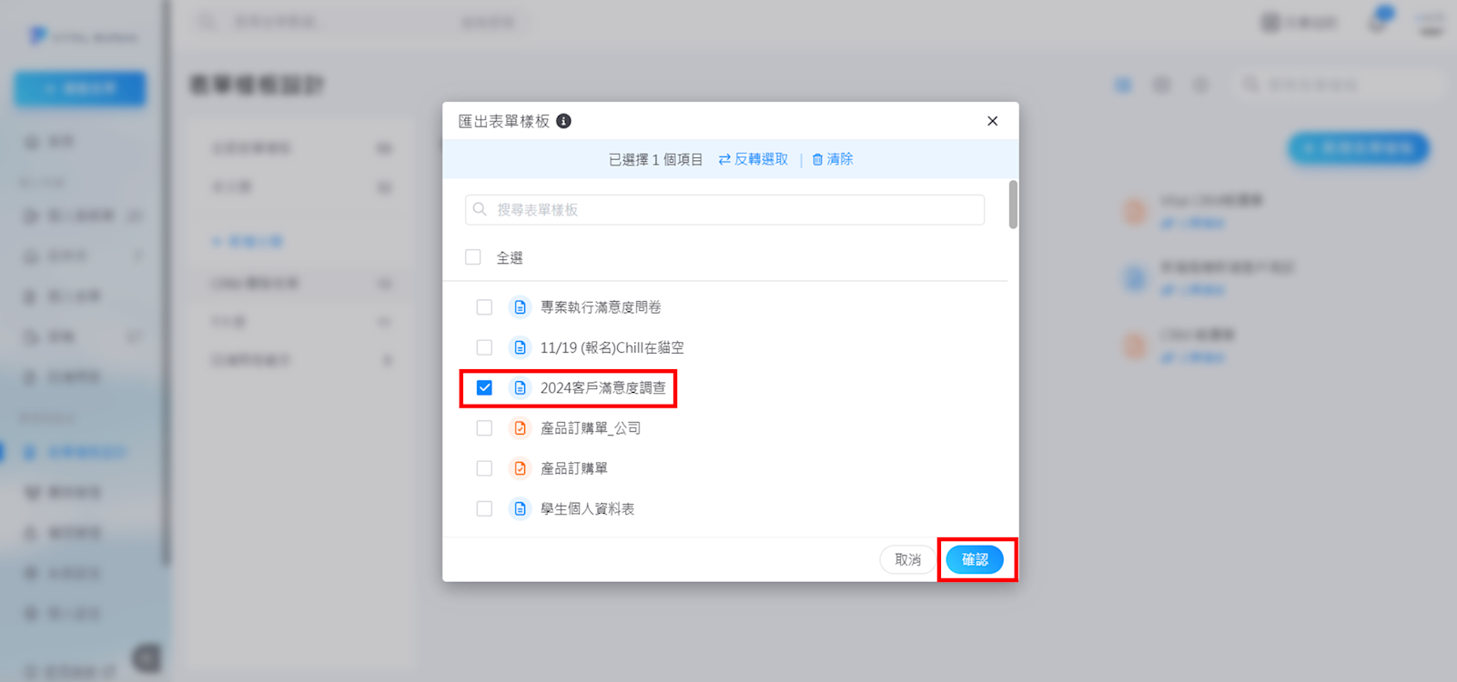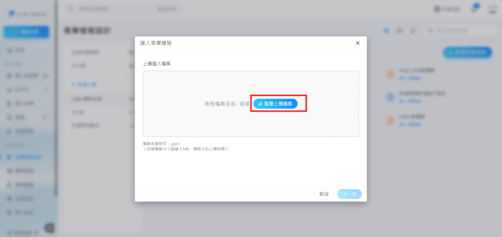 *匯出、匯入表單樣板支援的檔案格式皆為 json. 檔