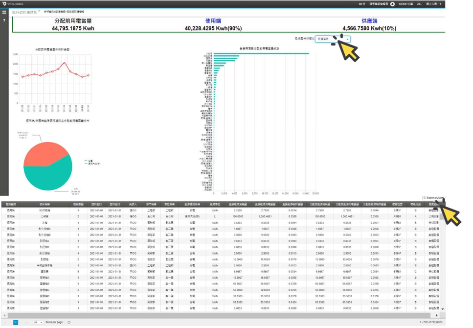 按下儀錶板下方明細表右上方[匯出 Excel],可匯出能源分配的明細資料。
