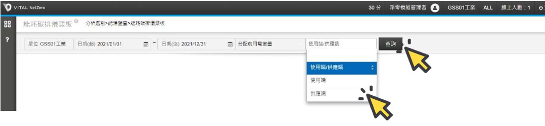 如果只想看到使用端或供應端數據分析,可接續點選[使用端]、[供應端]或預設的[使用端/供應端]。
