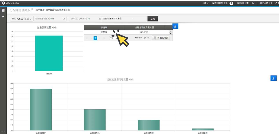 按下儀錶板下方右下方[匯出 Excel],可匯出能源分配的明細資料。