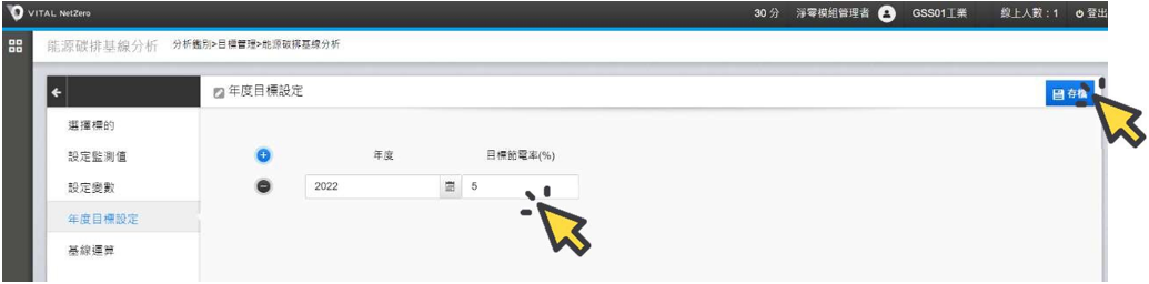 續點選[年度目標設定],設定各年度目標達成之年度節電率。