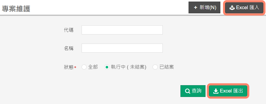 作業位置:維護作業 / 基本資料 /專案維護