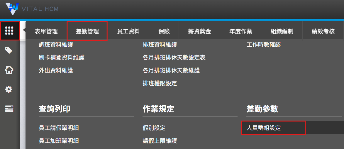 1. 系統路徑:【全站功能】>【差勤管理>人員群組設定】。
