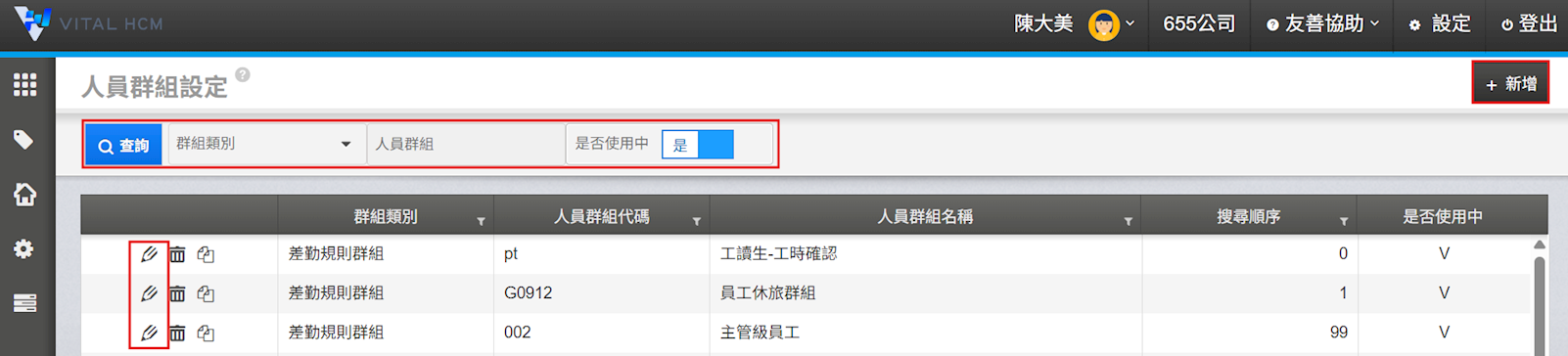 *請留意:人員群組最少需有一筆預設值「ALL-全體員工」,若有新增其他人員群組,預設值一樣要留著才能對應相關規則。
