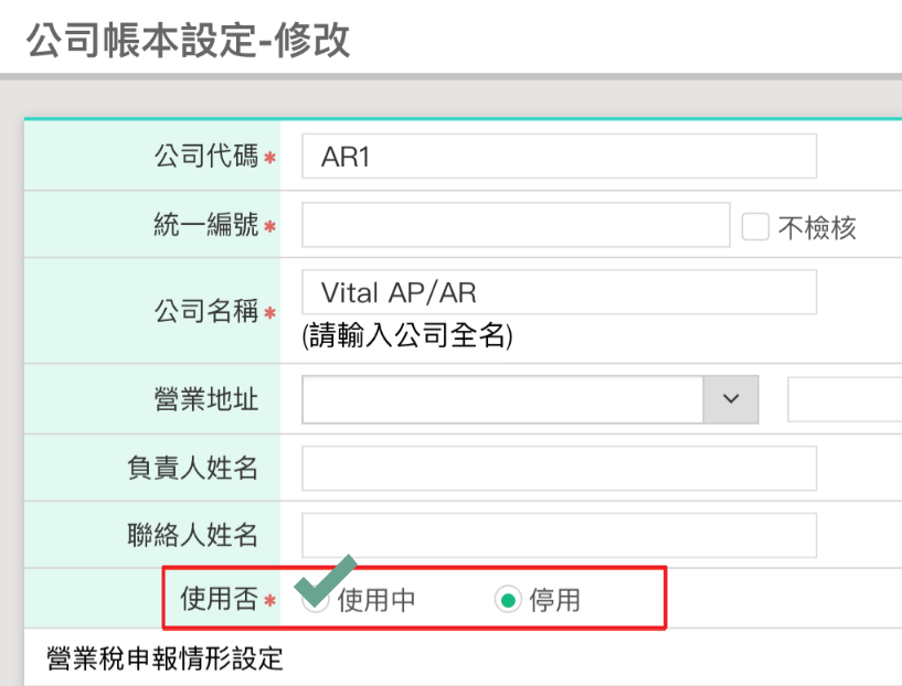※步驟:請至 GL 中,點選【維護作業>公司帳本設定>查詢】,系統會顯示所有帳本,請找到您在 AP/AR 使用的帳本,點選左方的鉛筆(修改)按鈕,進入畫面後,請檢查「使用否」欄位是否勾選「使用中」。.png)