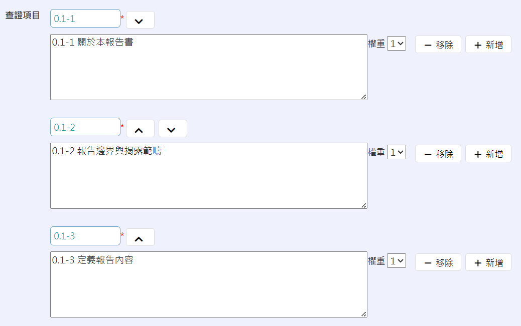 移除查證項目時,因系統並沒有檢查、提醒此項目下是否仍存在具體措施,導致使用者可能會不慎刪除相關資料,造成困擾。