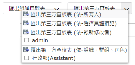 匯出組織自評表/第三方查核表/查證重點,增加:依照組織、群組與角色