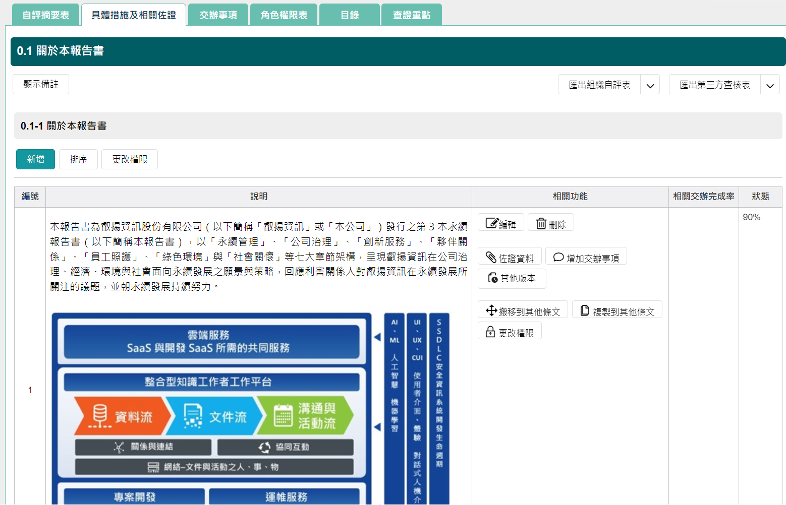 本次更新提供組織、群組與角色的具體措施匯出功能,能快速篩選並匯出特定組織、群組或角色下所有成員所撰寫的具體措施匯出。