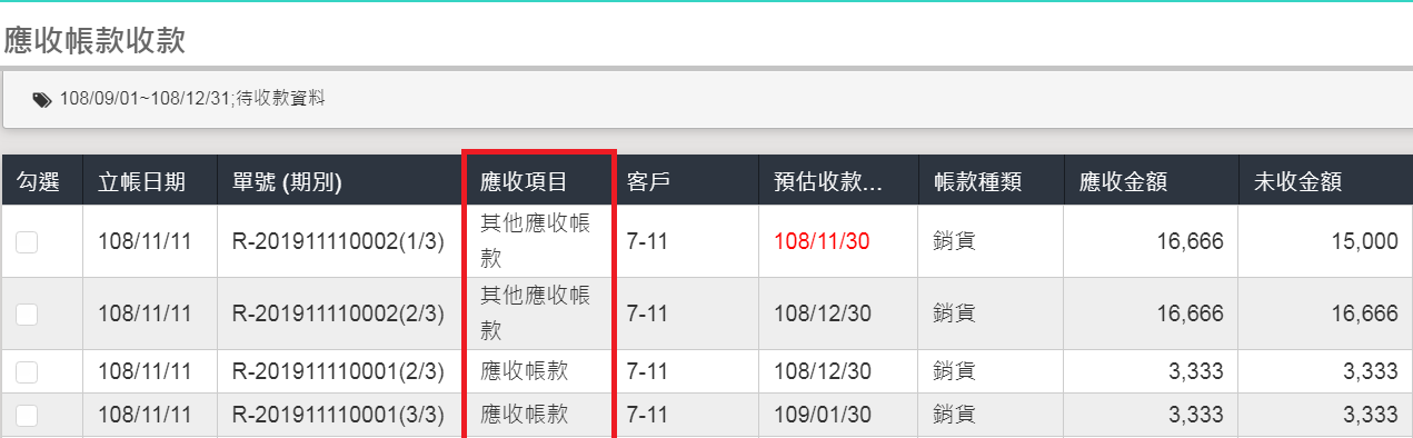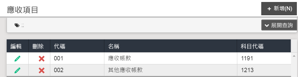 新增「應收項目」、「應付項目」欄位,以下以應收帳款做說明。