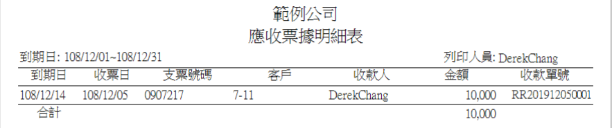 付款明細表 - 新增加票據相關報表 應收票據明細表