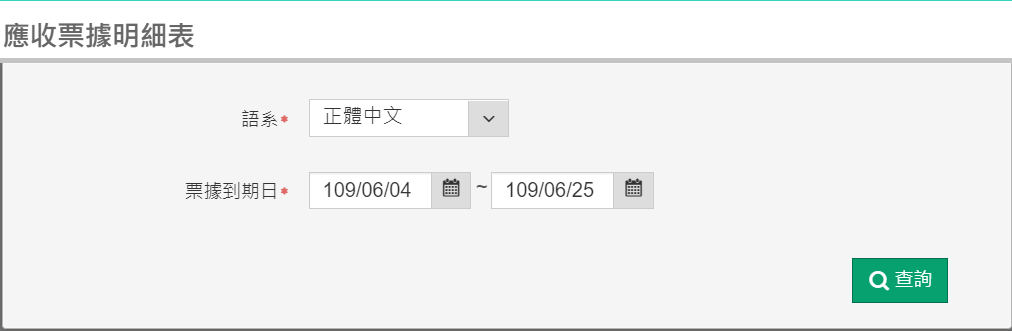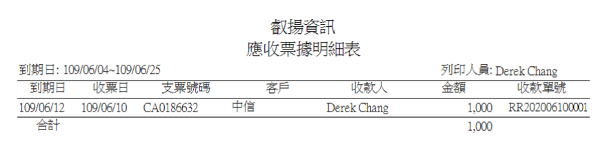 - 您可直接點選「應收票據」或「應付票據」瀏覽票據明細表。下圖以應收票據明細表為例說明。