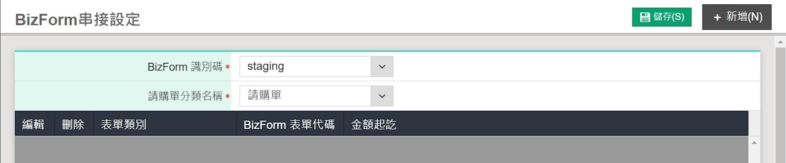 【費用暨零用金】維護作業>BizForm 串接設定