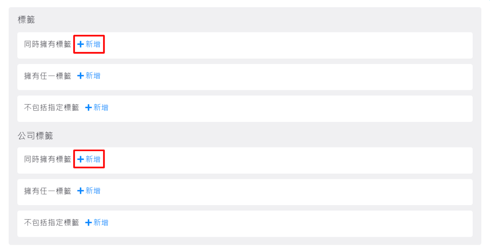 2. 您可以選擇您需要的條件選項進行輸入,右方的【新增+】展開後,能見到更多相關查詢功能。