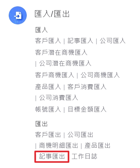 系統管理員可於「管理>匯入/匯出」中點選「記事匯出」進入功能操作:.jpg)