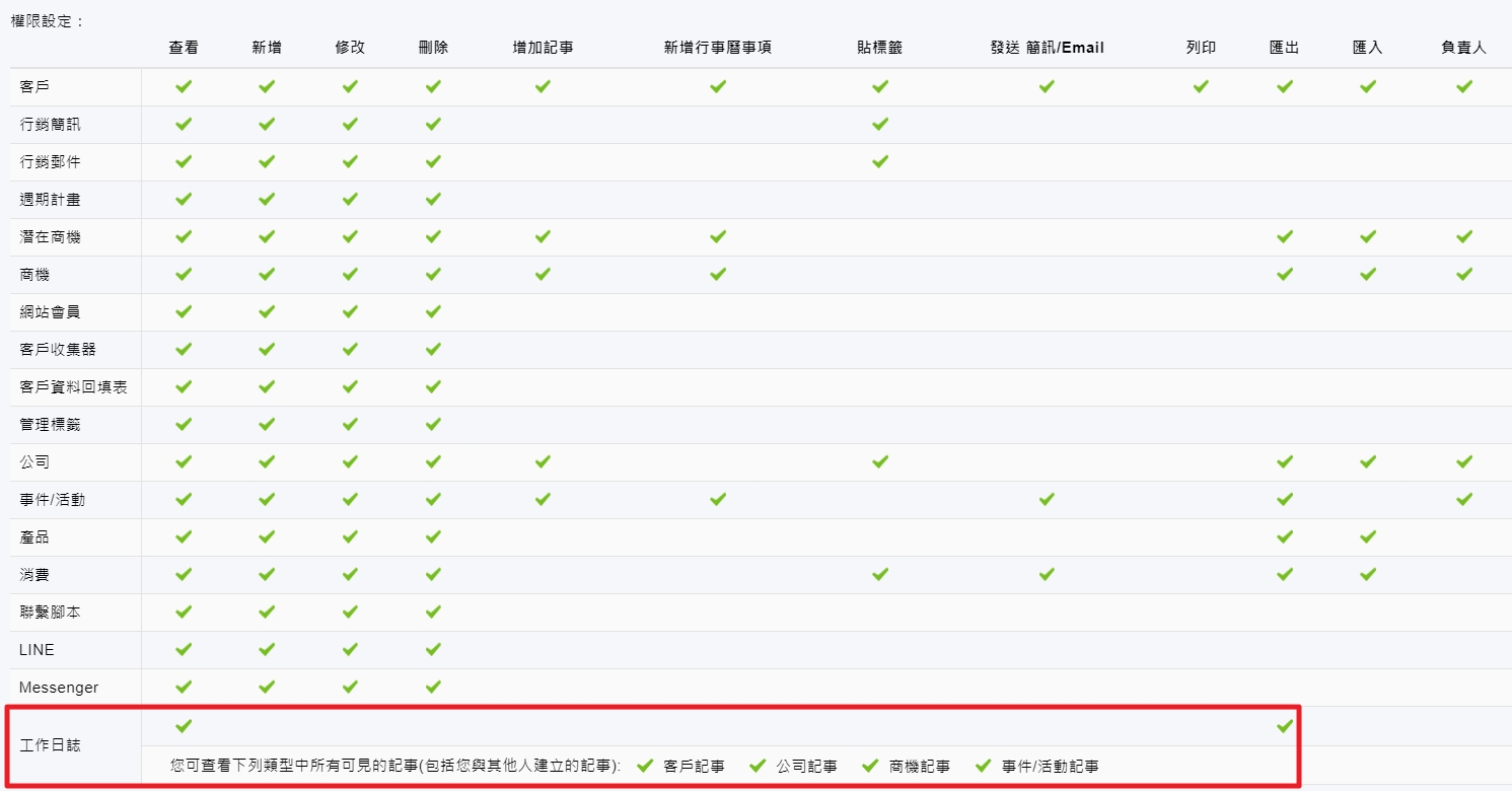 由於資料安全因素,記事匯出使用與工作日誌相同的角色權限(如下圖),如果您沒有匯出記事的權限,請洽詢系統管理員:.jpg)