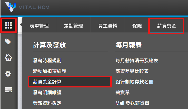 系統路徑:【全站功能】>【薪資獎金>薪資獎金計算】。