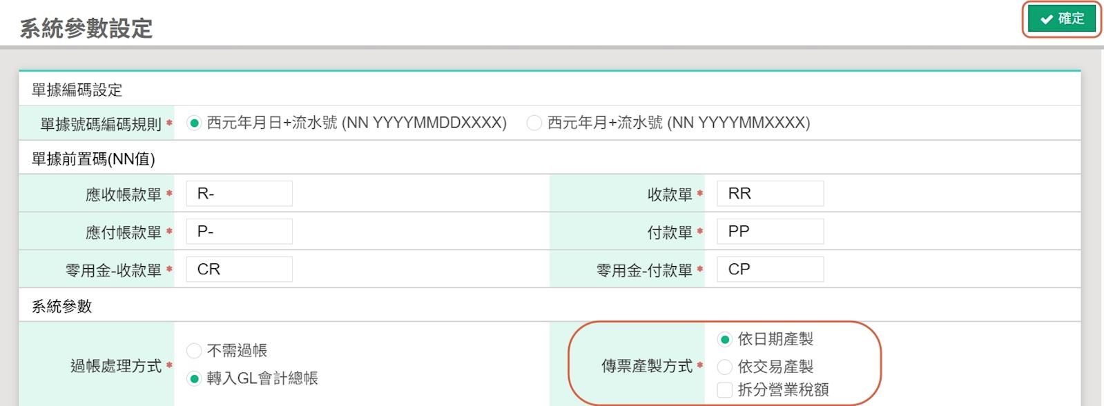2. 【傳票產製方式】選擇"依日期產製",系統會將相同日期的應付帳款付款彙整成一張傳票。