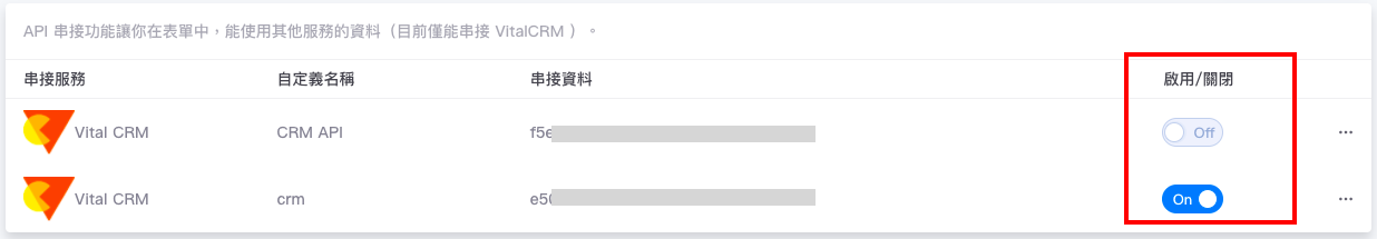 3. API 新增完畢後,請確認狀態為「On」。(如果以後不使用,可以將該 API 關閉)
