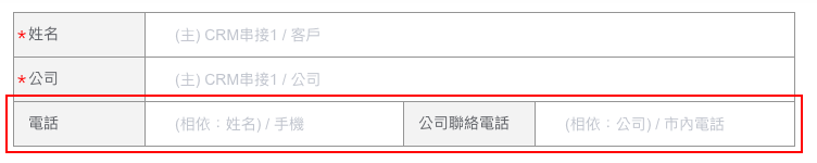 2. 相依欄位:意指客戶、公司或商機資料中的其他相關欄位,例如「電話、地址、電子郵件、客戶編號、公司編號」等等 CRM 系統中預設的資料欄位,根據相依的主欄位(客戶、公司或商機),系統會抓取相關資料。