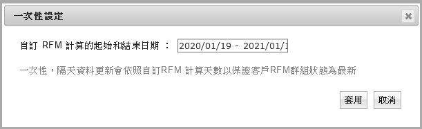 (1) 於 CRM Insigh t管理後台設定一次性 RFM 日期區間設定