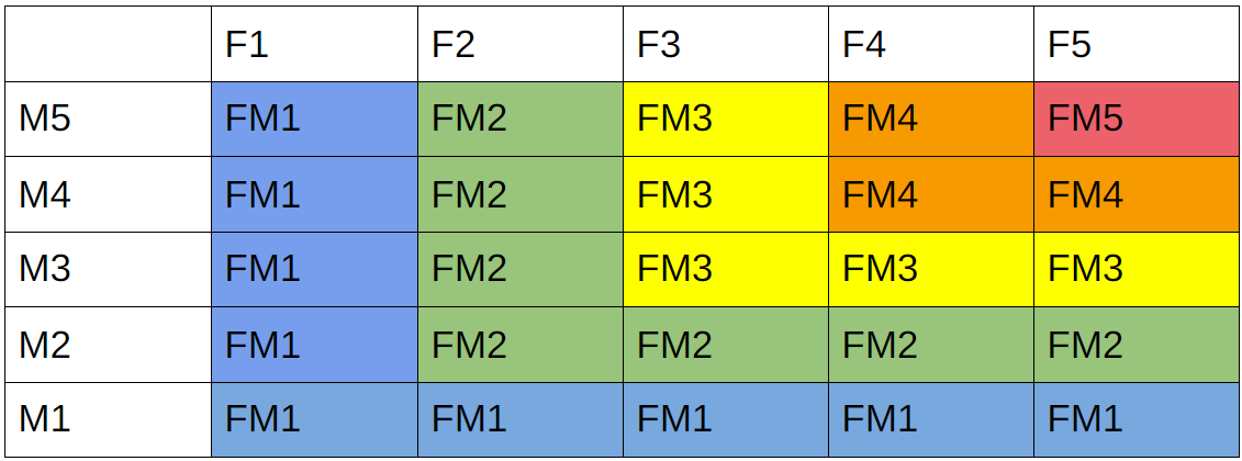 說明:FM 分群框架,數值根據客戶消費次數、平均購買金額均分 1~5,數值越大表示消費頻率及消費金額越高。